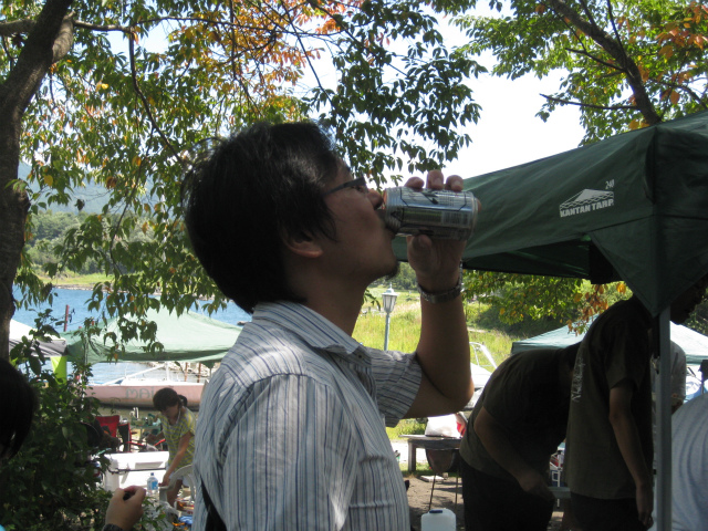 お日様の下で飲むビールは最高っす!