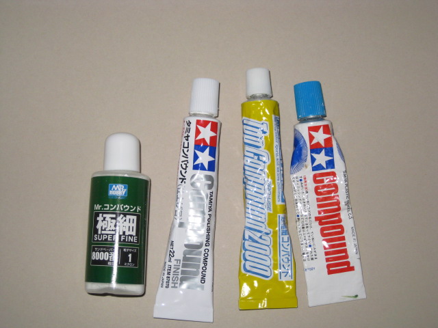 そして、タミヤコンパウンド「仕上げ目」です。こいつで最後磨けば鏡面仕上げが綺麗に出来るかと。